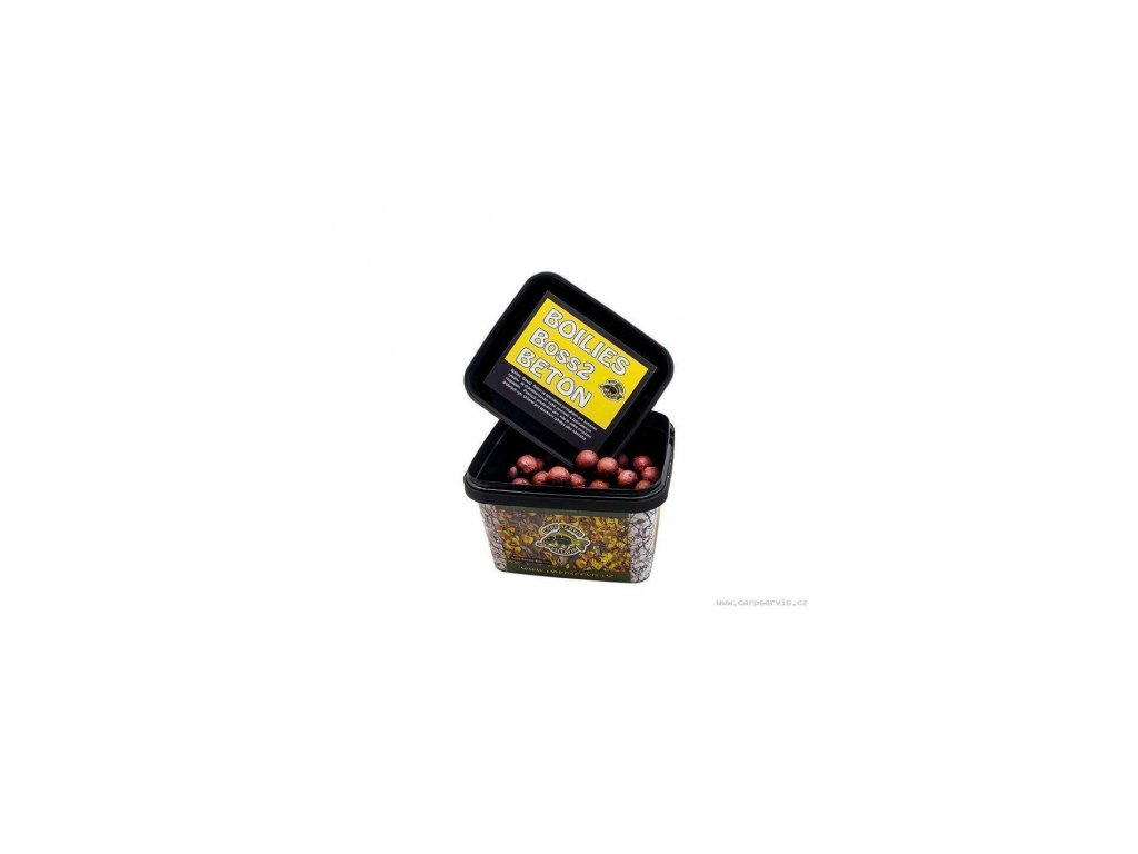 Produktová řada Boss2 Beton je specialitou, která vznikla díky zájmu rybářů, kteří loví na vodách s intenzivním atakem drobných ryb. Ty z běžného boilies udělají v krátkém čase hrášek a nakonec jej zcela udolají. Boilies Boss2 Beton je přesně tím, co pomůže podobné situace vyřešit. Složením se jedná o nástrahu tvrdě masového původu, jež obsahuje 50 % živočišných komponentů, které toto boilies jasně staví do role nutriční bomby. Díky značně pevnější konstrukci je i částečně omezeno uvolňování drobných částeček z povrchu a tím se omezuje záběrovost od menších kaprů. Díky těmto vlastnostem může být čekání na záběr o trošku delší, ale zato se můžeme s touto nástrahou dočkat trofejních úlovků i na vodách s osádkou menších ryb. Toto boilies mohou s úspěchem použít i ti rybáři, kteří chtějí svou montáž ponechat mnoho hodin bez přehození a vynutit si tak záběr od nedůvěřivých kaprů.