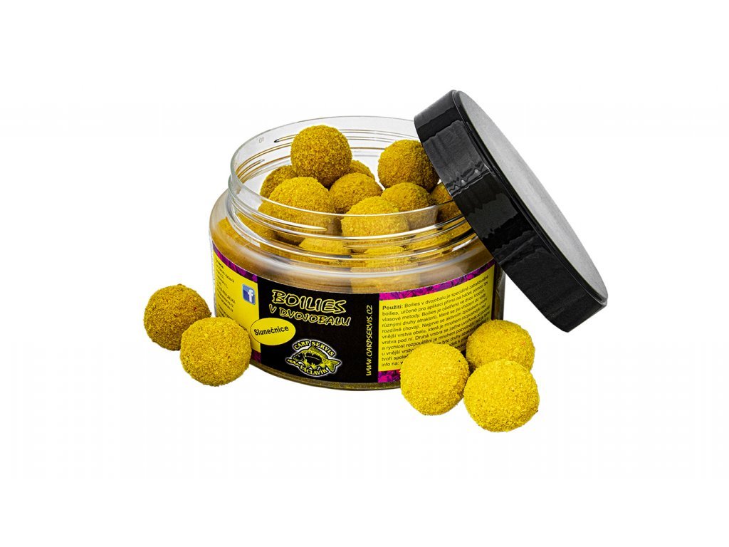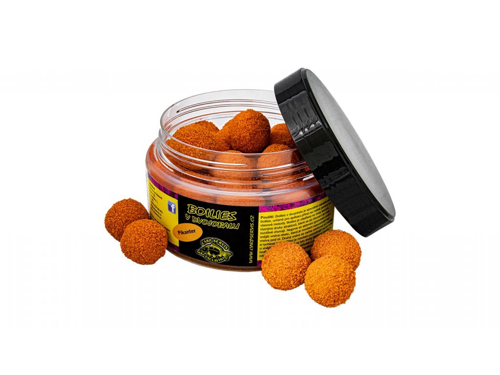 Boilies v dvojobalu je speciálně zatraktivněné boilies určené pro aplikaci přímo na háček pomocí tzv. vlasové metody. Boilies je ošetřeno ve dvou krocích různými druhy atraktorů, které se po vhození do vody rozdílně chovají. Nejprve se aktivním způsobem uvolní vnější vrstva obalu, která je mnohem rozpustnější než vrstva pod ní. Druhá vrstva se začne uvolňovat až později a rychlost rozpouštění je mnohem pozvolnější, než je tomu u vnější vrstvy. Celkově se tyto druhy atraktorů doplňují a tvoří společně vynikající prostředek k přilákání kaprů.