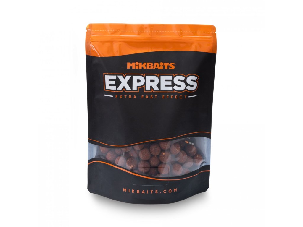 eXpress je jedno z nejrychleji působících boilie, jaké kde můžete sehnat. Přestože není nijak silně navoněný, záběry na něj bývají okamžité a velmi časté. Je to dáno vysoce atraktivním složením směsi i tekutých složek, které ve vodě uvolňují lákavé signály. eXpress se ve vodě postupně omílá a láká tak ryby k záběru. Funguje okamžitě bez předkrmování, a to i s minimem návnady. Lze jej bez obav použít i při dlouhodobějším rybolovu nebo silnějším vnadění, aniž by začal ztrácet účinnost. Je určen především k dosažení co nejvíce záběrů, přesto se na něj každý rok uloví trofejní kapři kolem 20kg. Dá se použít po celou sezónu včetně chladných období. Složení: Rybí a enzymatické rybí moučky 30%, ptačí zoby 15%, mléčné proteiny 12%, objemové přísady 30%, atraktory 10%, extrakty 3%, Ultra esence, tekuté potravy, esenciální oleje, chuťové stimulátory, tekutý prezervativ, čerstvá vejce.