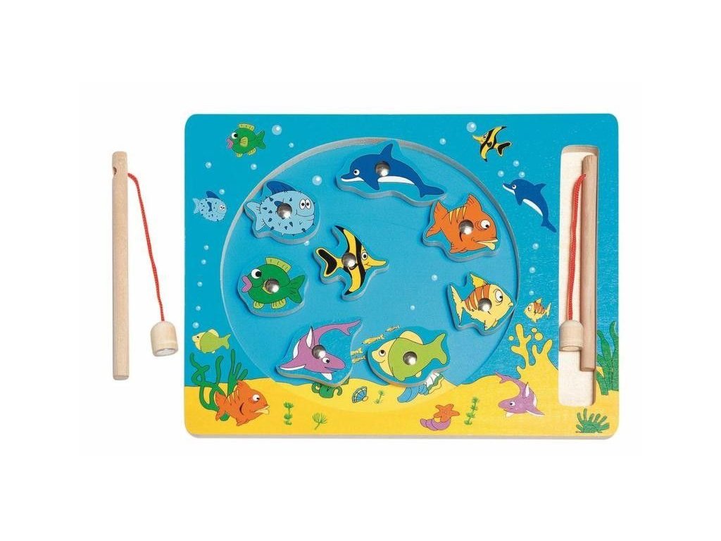 Barevné dřevěné rybičky mají v sobě kovový dílek, za který je ulovíte magnetickou udicí. Hra je vhodná na procvičování motoriky a trpělivosti.