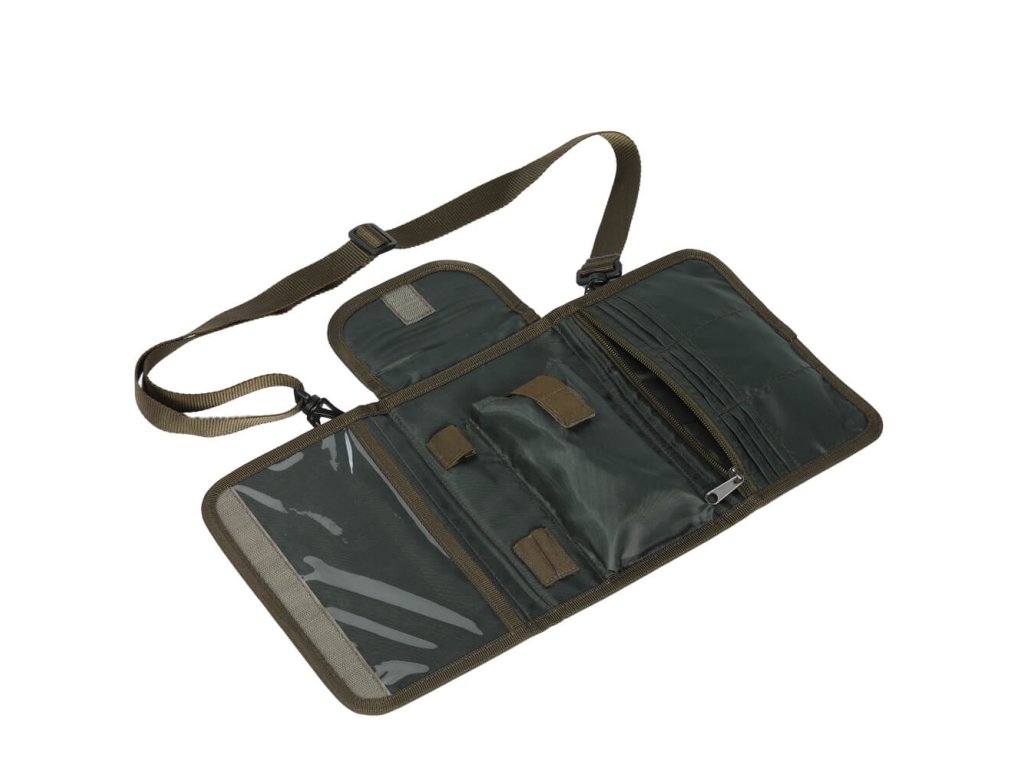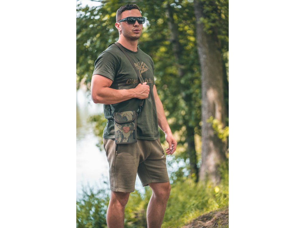 K dispozici je několik kapes na uložení, karet, kvóty, peněz, telefonu a pera atp. Dodáváno s odnímatelným ramenním popruhem. Vyrobeno z odolného a vodě odpudivého nylonu 210D, který je v decentním kamuflážovém vzoru.